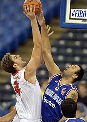 POR ENCIMA les pasó España y Pau Gasol (izq) a Yugoslavia y Vlade Divac (der) (AP)
