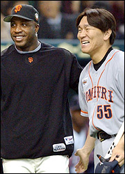 "Fue lindo batirme con Matsui. Espero que nos volvamos a encontrar en los Estados Unidos", declaró Bonds.