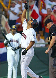 Rodríguez abandonó el juego y la ofensiva dominicana explotó con otras dos anotaciones, impulsadas por batazos de Luis Polonia y Miguel Tejada frente a los envíos de los relevistas Edgar Huerta y Mike García, respectivamente.