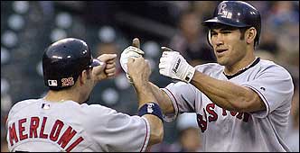 FORT MYERS, Florida - El jardinero central de los Medias Rojas de Boston Johnny Damon, fue retirado de la alineación del miércoles, debido a un estirón ligero en el área de su codo izquierdo.