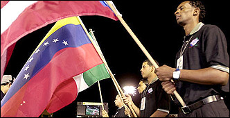 Durante la emotiva ceremonia, se izó la bandera de Puerto Rico y el locutor oficial señaló, "lo hacemos en solidaridad y homenaje con nuestros hermanos venezolanos''.