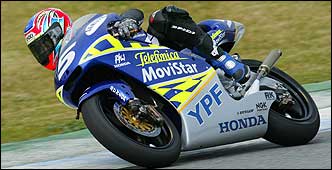 Queda un trabajo muy arduo por delante para que la moto sea ganadora. En cuanto al motor todavía estamos utilizando el motor del año pasado con algunos elementos nuevos. HRC ha prometido que antes del GP de Japón estará entregando el motor 2003. Sus técnicos japoneses llevan un control estricto de lo que hacemos sus dos pilotos oficiales. El italiano Roberto Rolfo será el otro piloto que reciba asistencia directa de Honda.