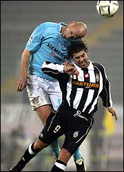 Jakob Stam supera al chileno Marcelo Salas. La Lazio volvió a ganar de visitante.