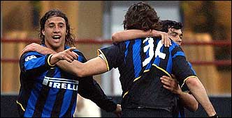 A los 14, un centro desde la izquierda del turco Emre, Crespo la peinó para atrás y el "Toro" Christian Vieri, también de cabeza, le dio la victoria al conjunto interista. El ex delantero de River salió a los 83.