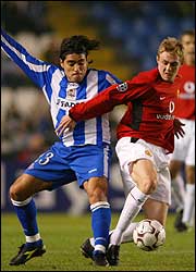 En el otro encuentro del grupo D, el Deportivo La Coruña venció por 2-0 a un Manchester United "B", porque ya estaba clasificado. Igual sirve de consuelo. El equipo de Sir Alex Ferguson siempre es peligroso. Eso sí, Juan Sebastián Verón no fue convocado.