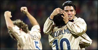 El técnico del Barcelona, Van Gaal, se rectificó a tiempo y sacó a Riquelme y Saviola del banco de suplentes para que le salvaran la ropa; en Inter, Almeyda y Crespo hicieron convencer al entrenador Cúper que están para jugar tanto en Calcio como en Champions