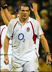 Martin Johnson, capitán de Inglaterra, se va de la cancha con la tranquilidad del deber cumplido tras vencer a Francia en la primera fecha del torneo de las Seis Naciones