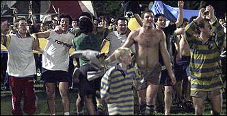 Los campeones festejan después de superar a Alumni